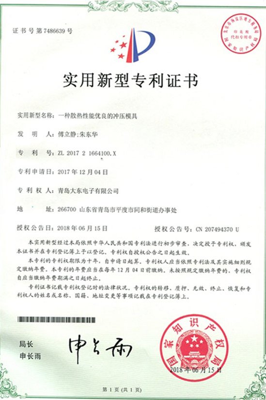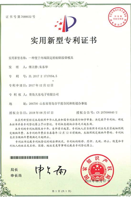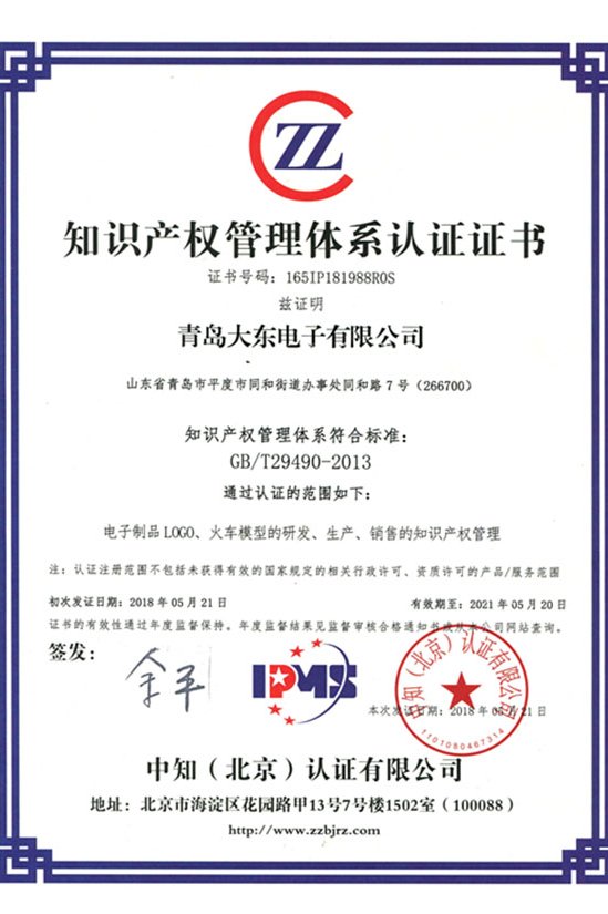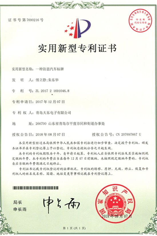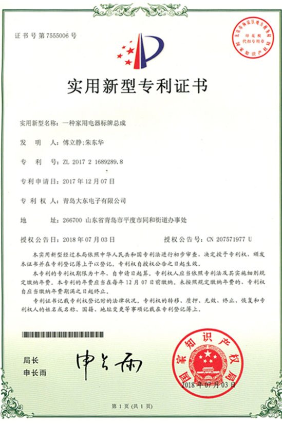 青島大東標(biāo)牌-知識(shí)產(chǎn)權(quán)專利認(rèn)證證書