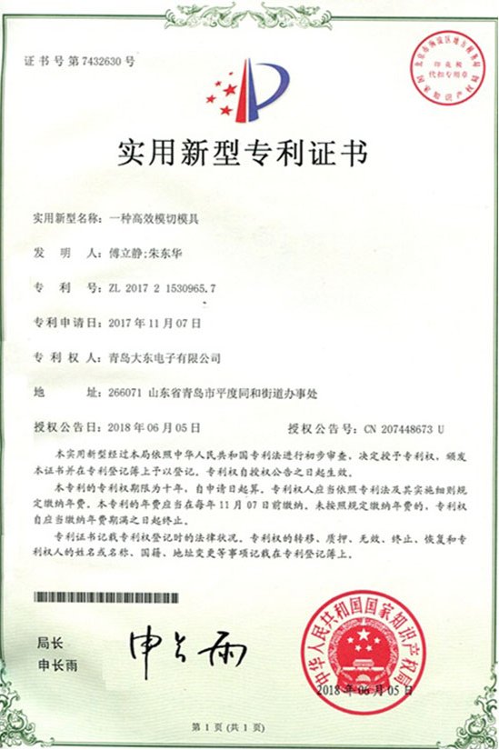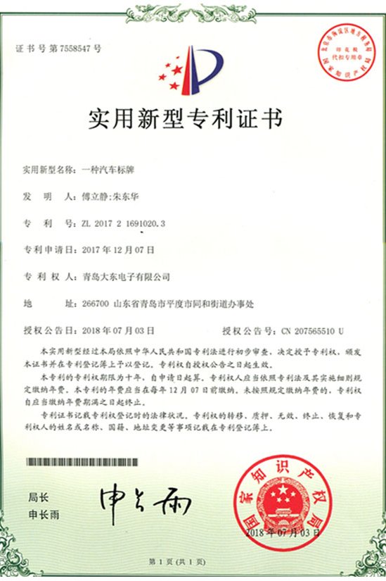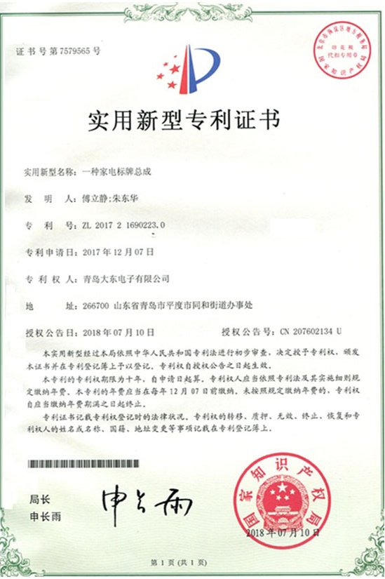 青島大東標(biāo)牌-知識(shí)產(chǎn)權(quán)專利認(rèn)證證書